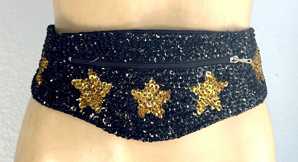 Sequin Cummerbund Fashion Belt Black with Gold Stars