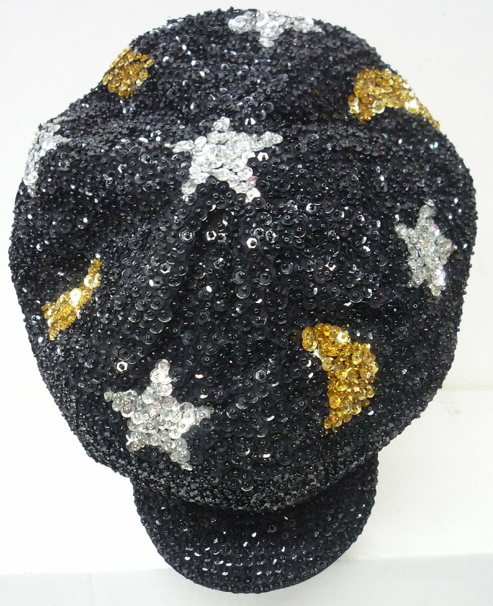 Sequin Brando Cap BLACK with SHAMROCK & GOLD Beads