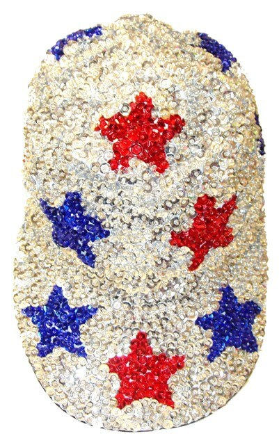 Sequin Baseball Cap USA Silver w/Red & Blue Stars for KIDS