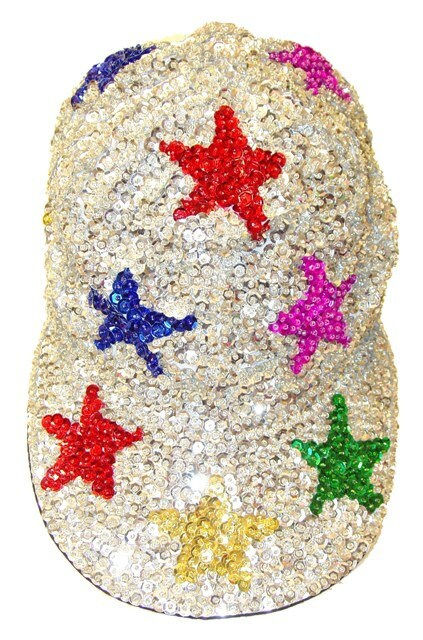 Sequin Baseball Cap SILVER with COLOR STARS for Kids