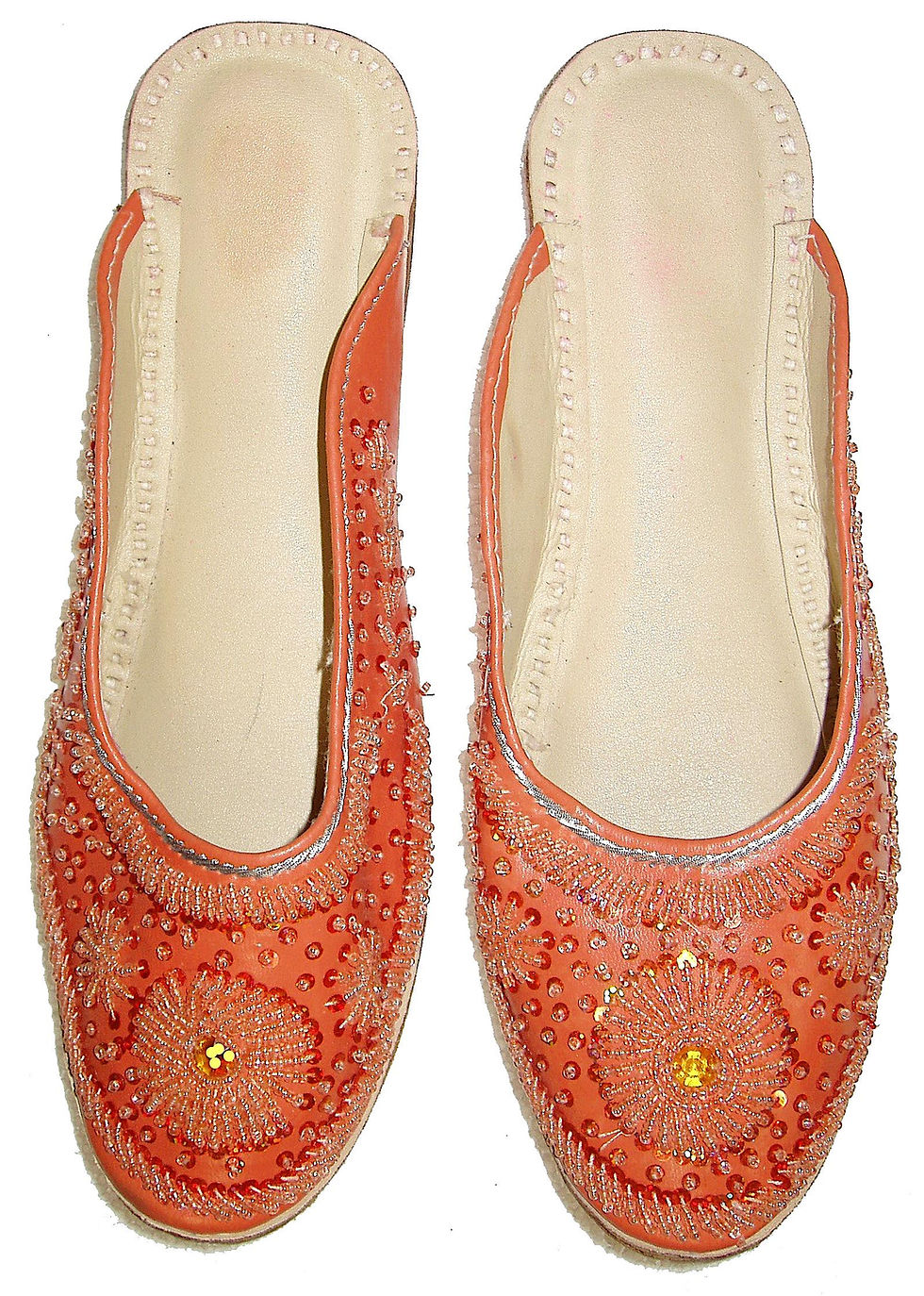 Leather Beaded Slippers ORANGE
