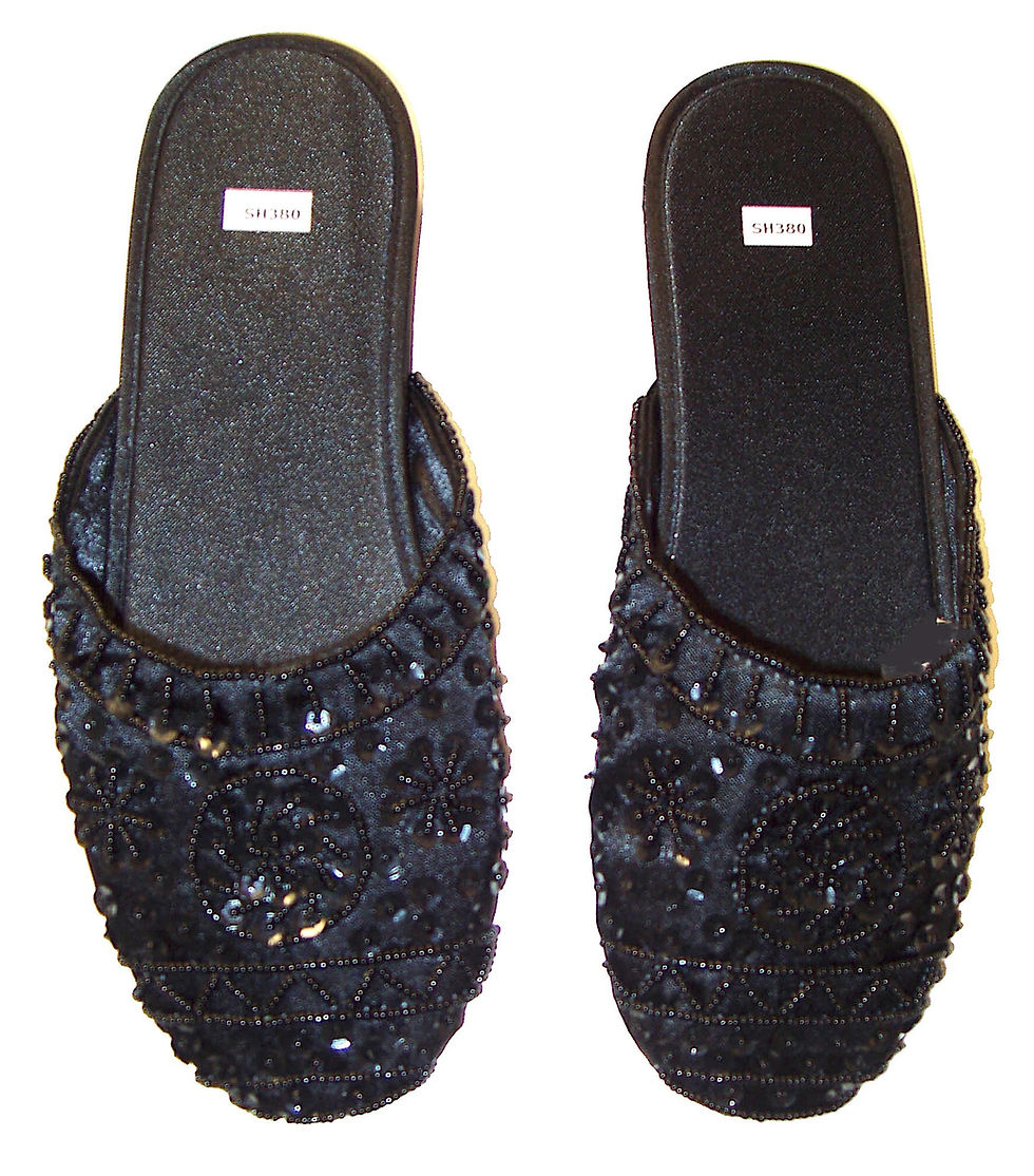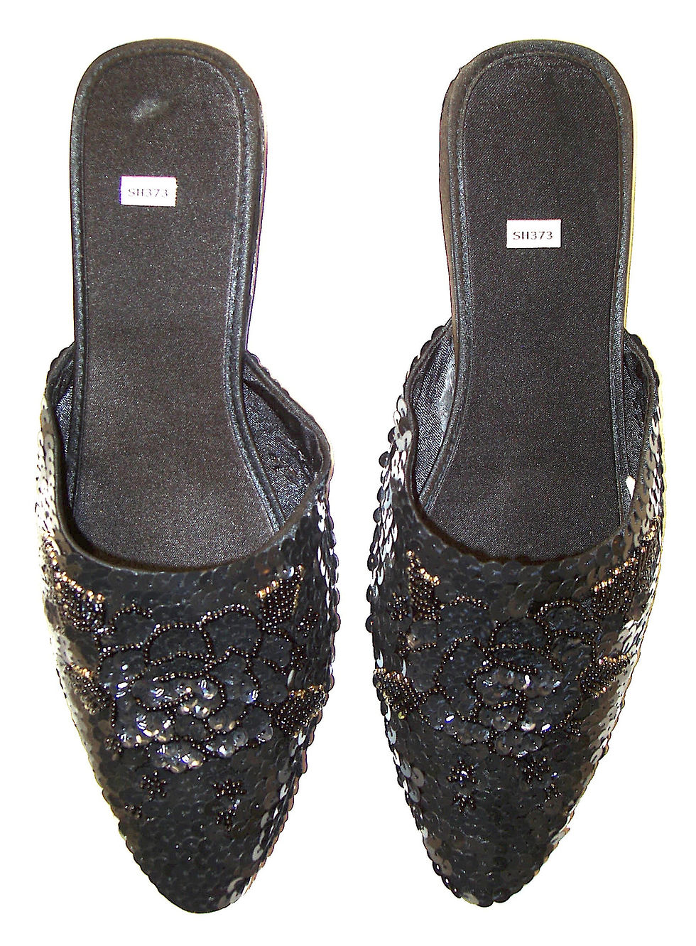 Sequin Satin Beaded Slippers BLACK